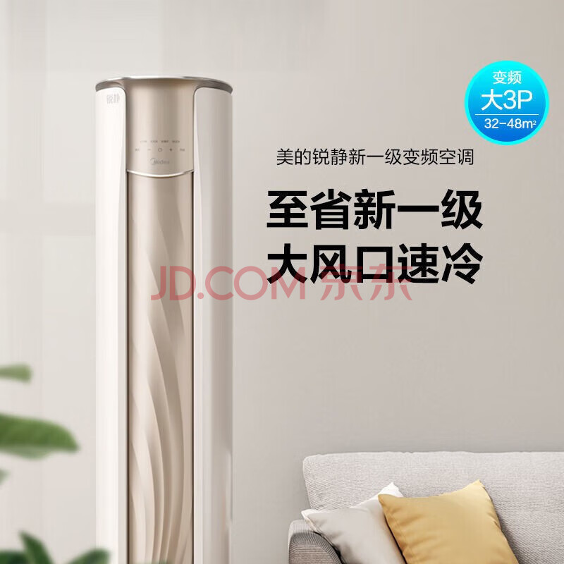 商品相册:美的(Midea)锐静升级大风口大2匹空调 新一级能效变频冷暖 家用立式空调柜机 KFR-51LW/N8VHC1Ⅱ第