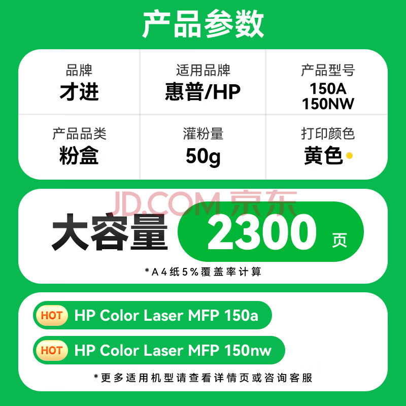 商品相册:才进适用惠普150nw粉盒黄色带芯片HP Color Laser 150a激光打印机硒鼓hq150原装Y墨粉盒w2082a专用碳粉盒晒鼓第