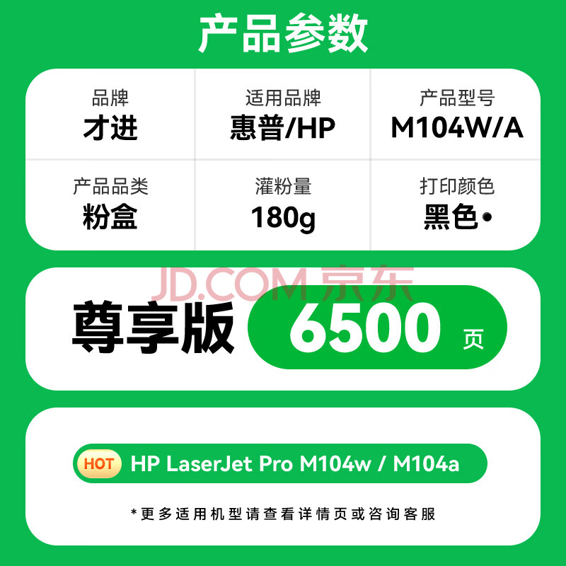 商品相册:才进适用惠普M104a硒鼓HP LaserJet Pro M104w粉盒104a黑白激光打印机原装易加粉墨粉盒CF218A专用黑色碳粉盒第