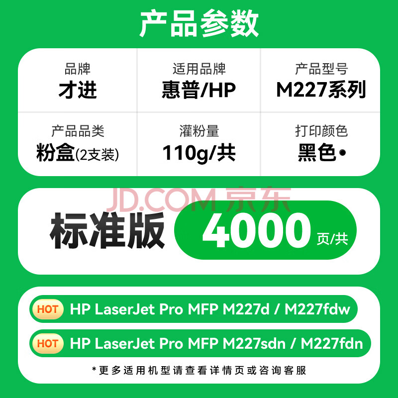 商品相册:才进适用惠普M227d粉盒HP LaserJet Pro MFP M227d硒鼓hp227黑白激光打印机原装易加粉复印一体机30a专用晒鼓第