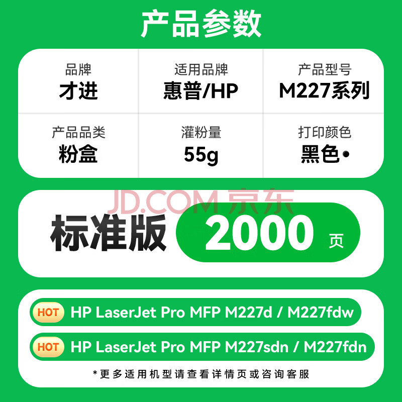 商品相册:才进适用惠普M227d硒鼓HP LaserJet Pro MFP M227d粉盒G3Q78A黑白激光打印机原装易加粉墨盒多功能一体机专用第