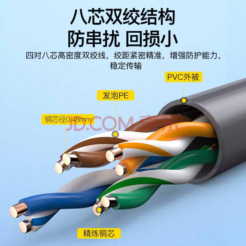 商品相册:秋叶原(CHOSEAL)超五类网线 CAT5e类高速百兆网线 工程家用电脑宽带连接跳线成品网线 15米 QS2608AT15J第