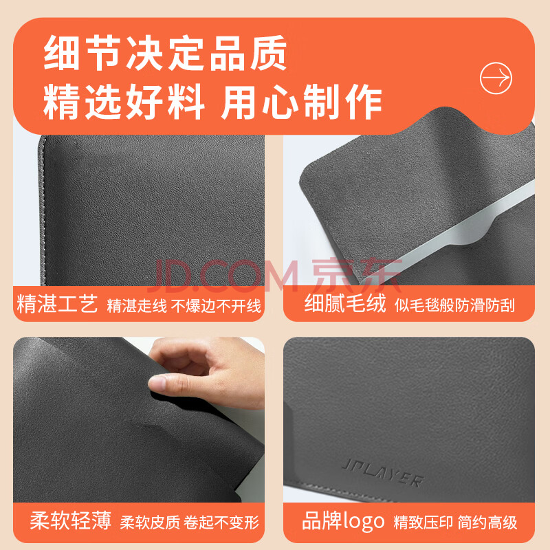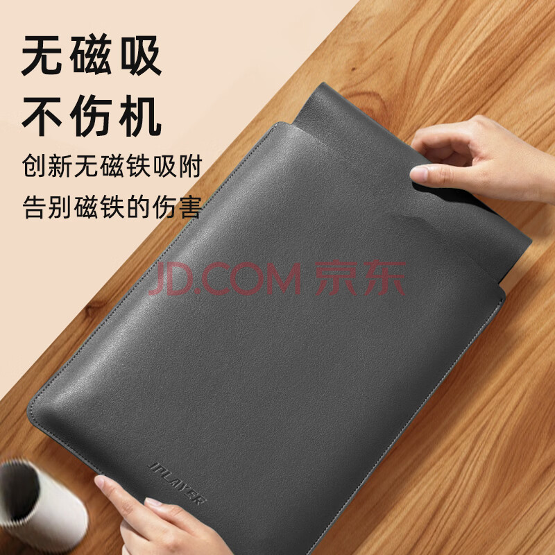 商品相册:JPLAYER笔记本电脑内胆包适用于联想小米华为苹果macbook12-14英寸简约轻薄皮质电脑保护包 黑第