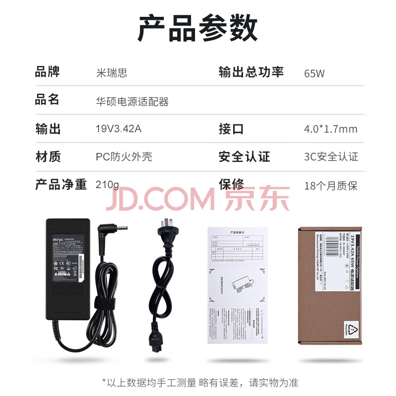 商品相册:米瑞思(mryc)华硕笔记本电脑充电器19V3.42A适用神舟炫龙战神K610D海尔电源适配器线65W 4.0*1.7小头圆口第