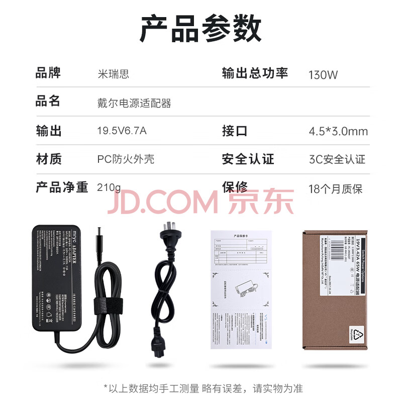 商品相册:米瑞思(mryc) 戴尔笔记本充电器19.5V6.7A 130W适用Dell XPS13 9560 Precision 5540 5530电脑电源适配器线小口第
