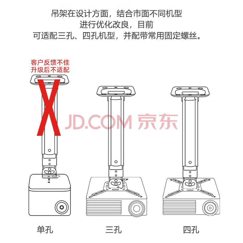 商品相册:鲸米(JINGMI)投影仪吊架H300吊装壁挂支架伸缩长度29-39CM适配三/四孔投影机多功能投影吊架第