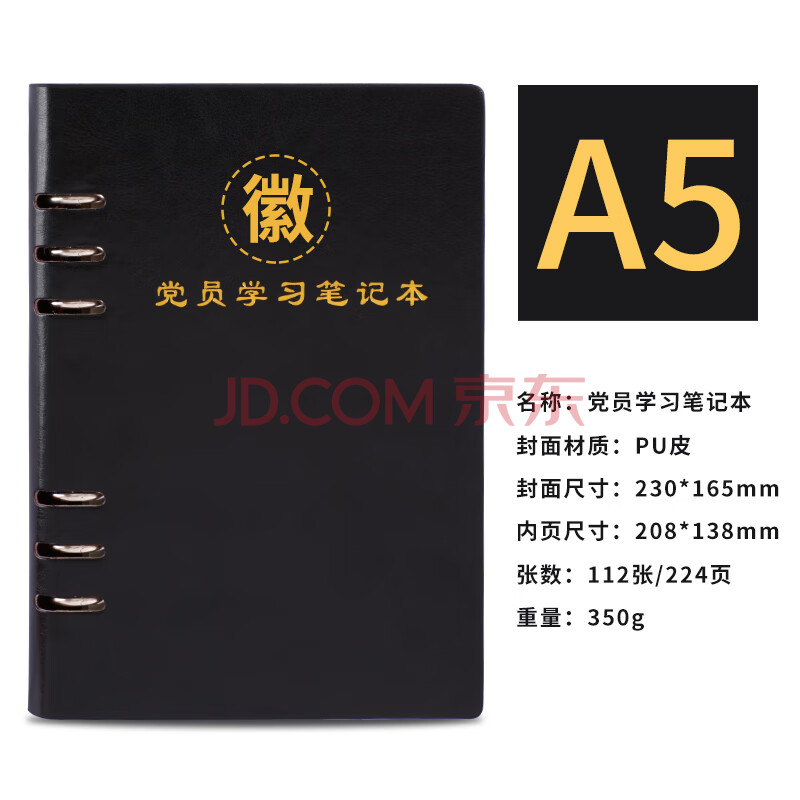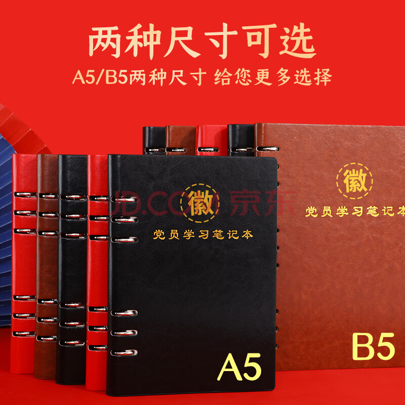商品相册:嘉然恒 活页款党员学习笔记本2023年款党史党建工作学习本三会一课党务党支部会议记录本可定制A5黑色第