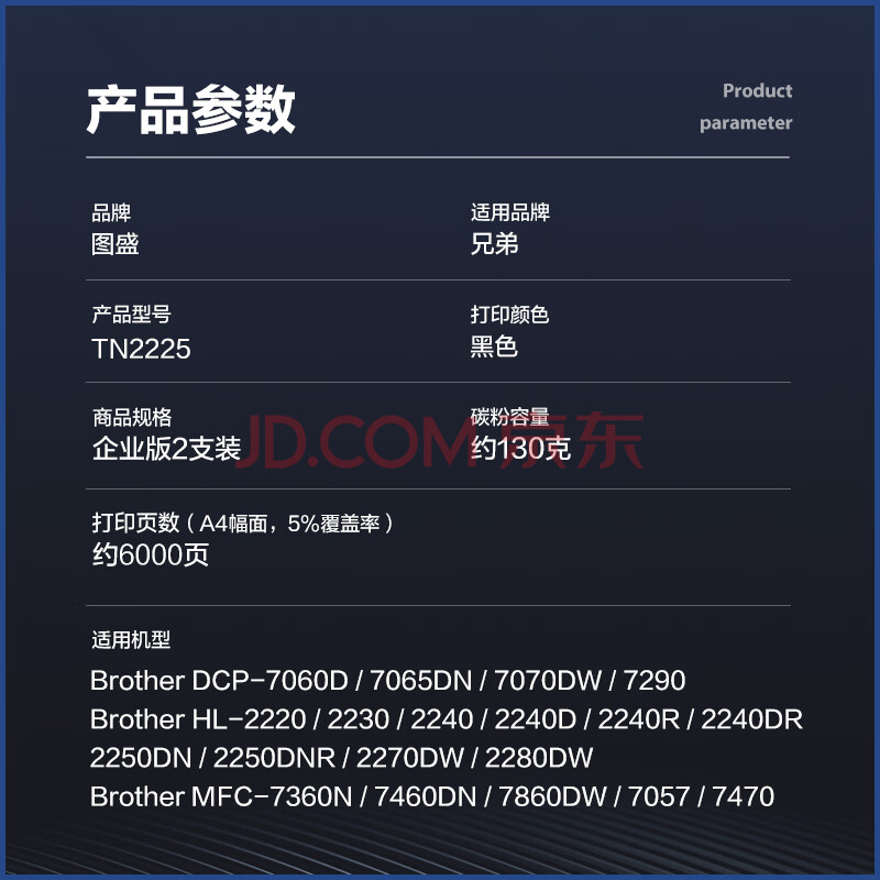 商品相册:图盛适用兄弟MFC7360粉盒TN2225硒鼓 Brother DCP7057/7060D/7470d/7860DW/7065dn HL2240D/2130打印机硒鼓TN420 TN2215粉盒第
