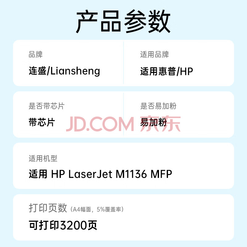 商品相册:连盛适用 惠普M1136硒鼓 HP LaserJet M1136 MFP打印机硒鼓 墨盒 墨粉 大容量第