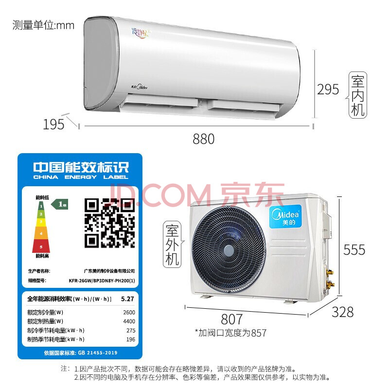 商品相册:美的(Midea) 空调 KFR-26GW/BP3DN8Y-PH200(1) 大1匹变频冷暖挂机第