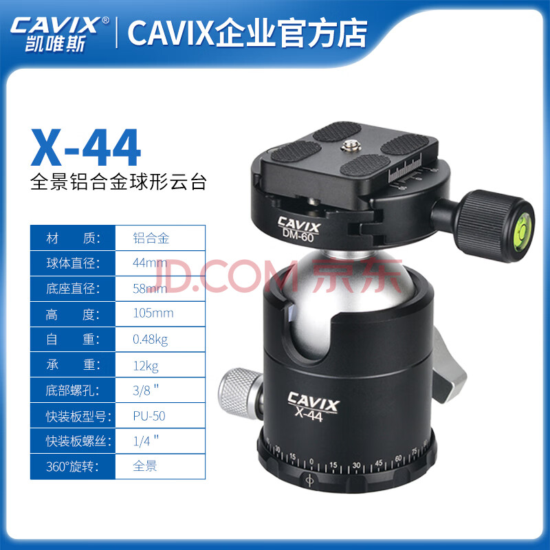 商品相册:凯唯斯 CAVIX X-44S 铝合金摄影摄像相机全景云台第