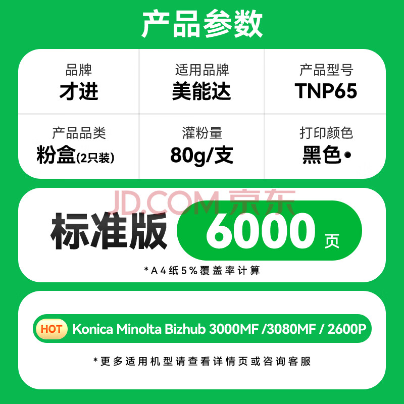 商品相册:才进适用柯尼卡美能达3000mf粉盒TNP65 Bizhub 2600P硒鼓3080MF复印一体机IUP27柯美3000mf打印机墨盒pagepro第