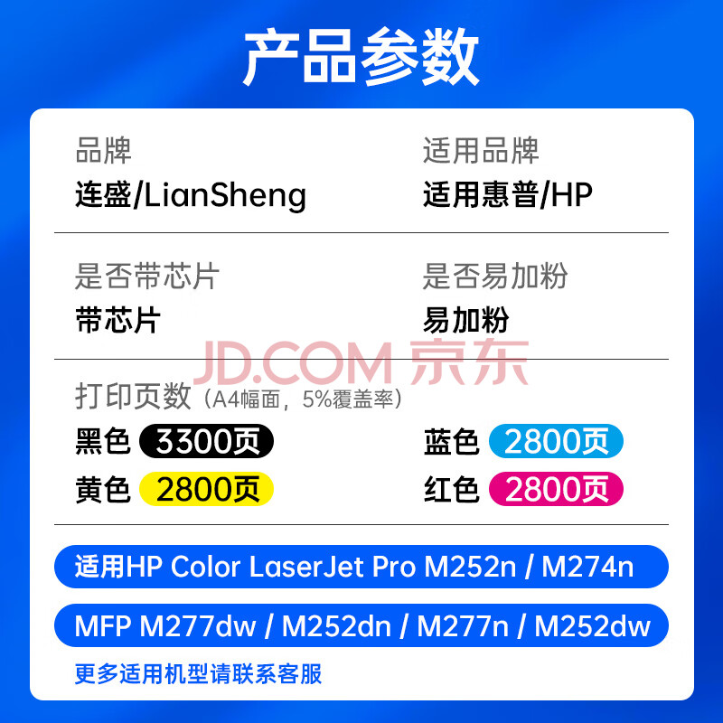 商品相册:连盛201a硒鼓cf400a适用m252n m252dw m277n m277dw m274n粉盒 CF400A-3A 四色套装第