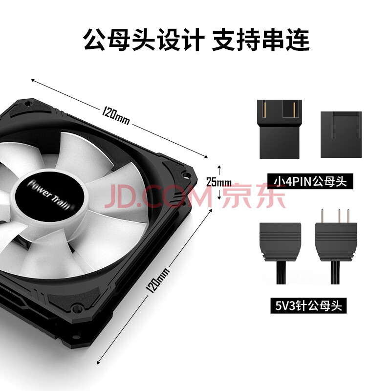 商品相册:动力火车(PowerTrain)凝冰ARGB白色12CM机箱风扇神光同步120mm台式电脑主机PWM智能温控 公母头设计 可串联 4PIN供电第