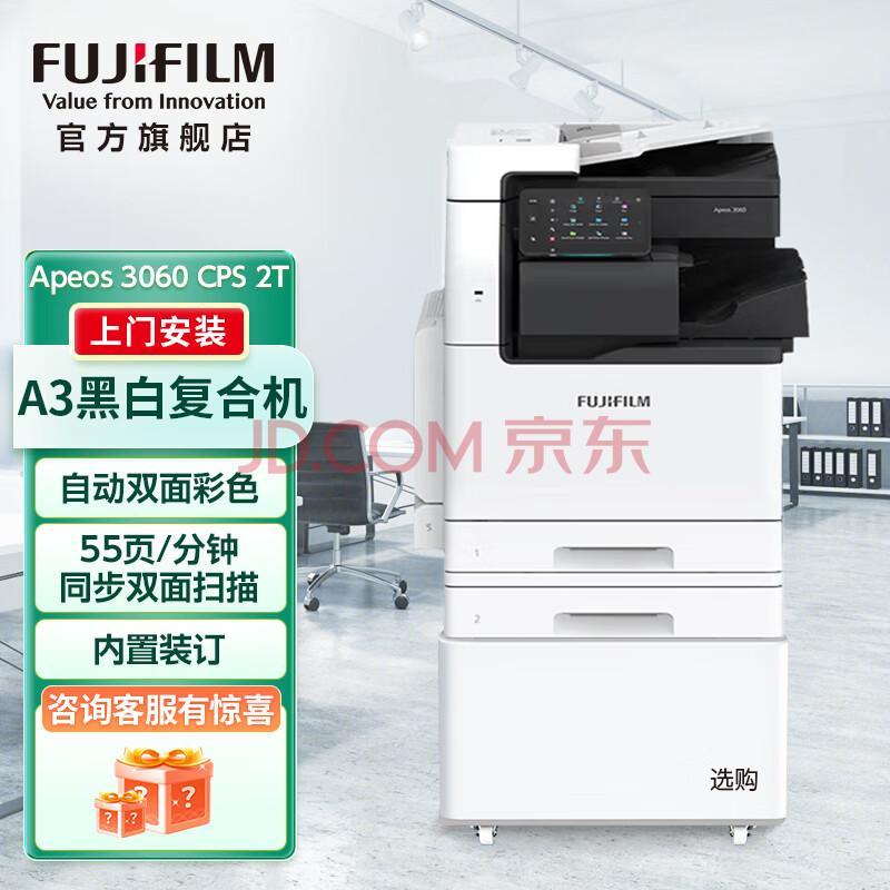 商品相册:富士胶片( FUJIFILM) Apeos C3060 CPS-B 2Tray A3彩色多功能复合复印机 含输稿器+双纸盒 安装售后 30速第