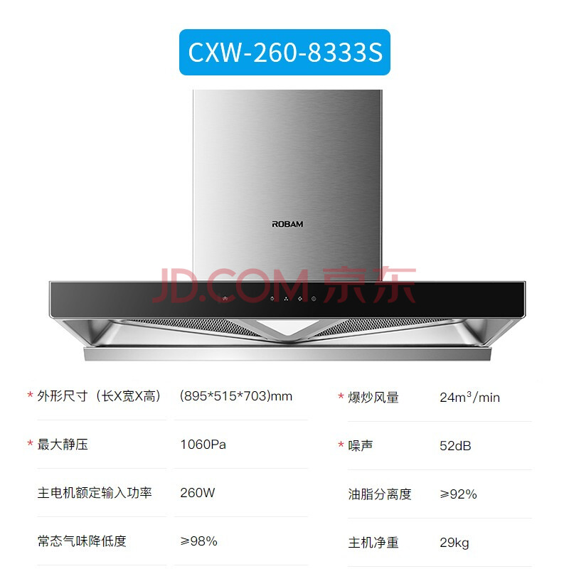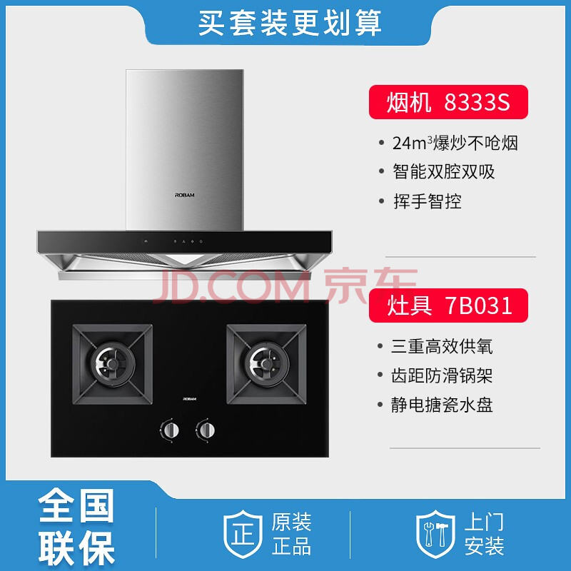 商品相册:老板 (Robam )24立方大吸力 1060Pa风压 免拆洗大吸力油烟机燃气灶套装 8333S+7B031第1张/共5