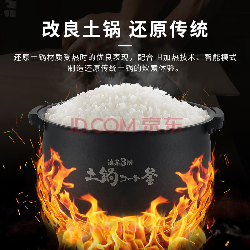 商品相册:虎牌(TIGER)原装进口【京东专供】 电饭煲Pro 智能IH电磁加热 土锅涂层电饭煲家用 2-6人 3L JKT-D10C-KZ第