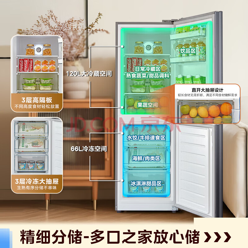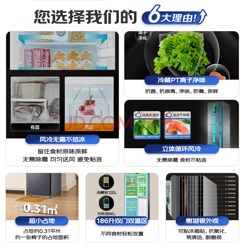 商品相册:美的冰箱186升净味两门节能低音风冷无霜迷你超薄小型家用租房小户型BCD-186WMA榭湖银第