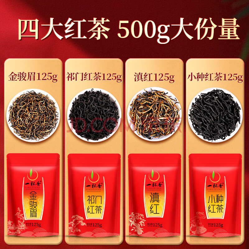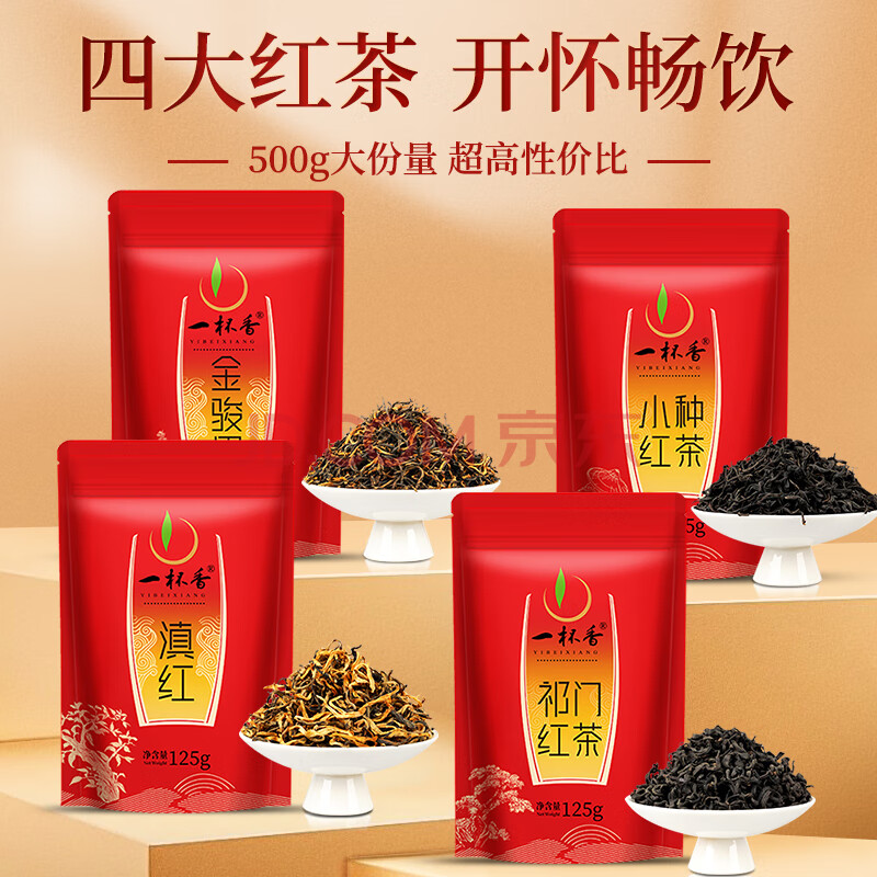商品相册:一杯香茶叶四大红茶金骏眉小种红茶祁门滇红500g礼盒装送礼自己喝散装第