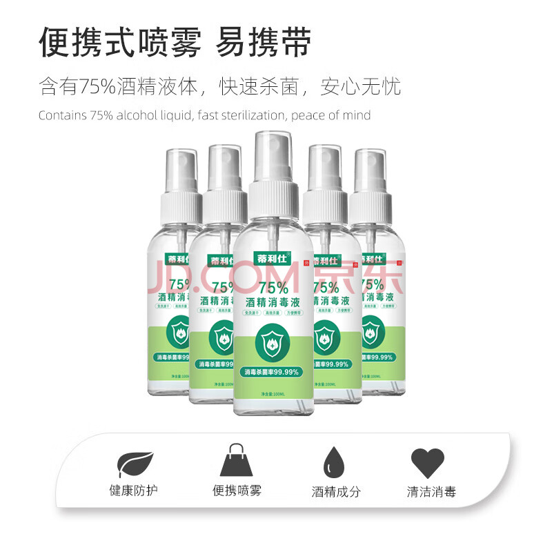 商品相册:蒂利仕75%酒精喷雾200ml*6瓶便携消毒喷雾消毒水居家办公除菌杀菌免洗手第