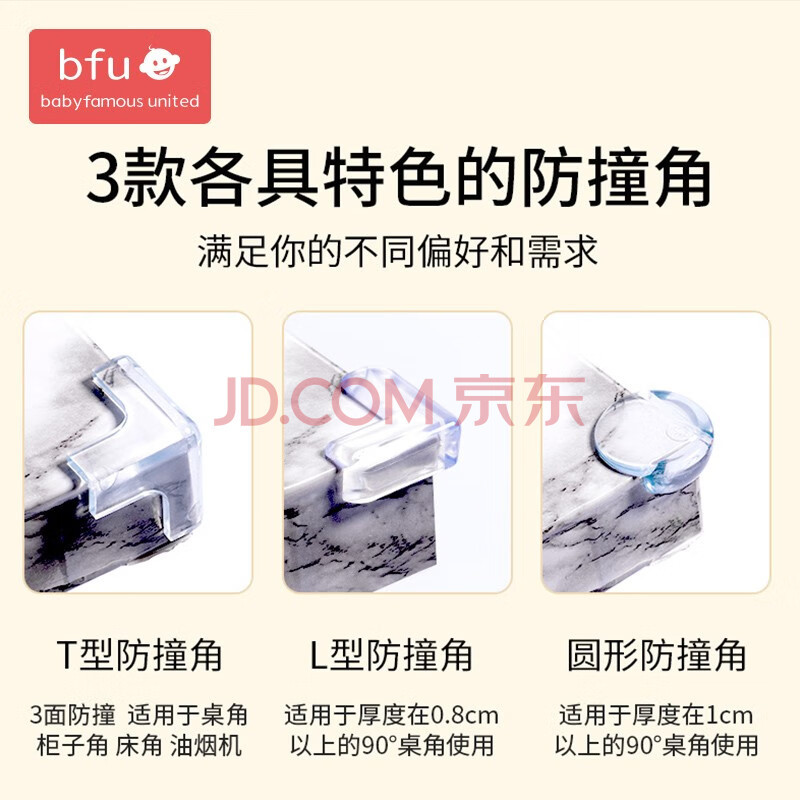 商品相册:BFU T型防撞角透明免贴桌角防撞儿童护角保护套防磕碰桌子安全8只装第