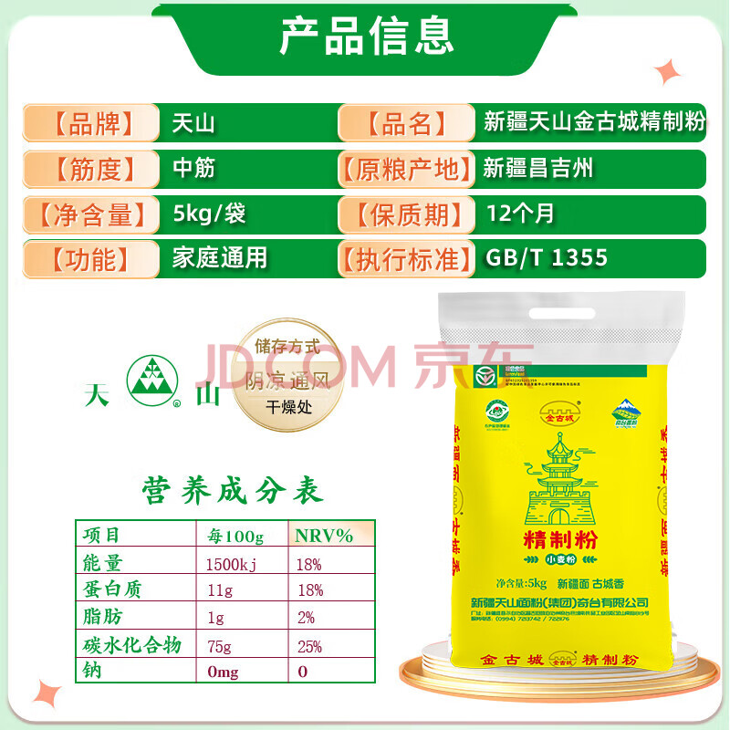 商品相册:天山 新疆面粉精制粉面粉10斤 家用馒头拉条子 中筋通用小麦粉 旗舰款第