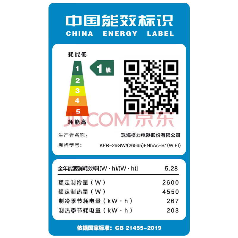 商品相册:格力 新能效 大1匹 凉之静 新一级能效 变频冷暖空调 智能挂机 KFR-26GW/(26565)FNhAc-B1(线下同款)第