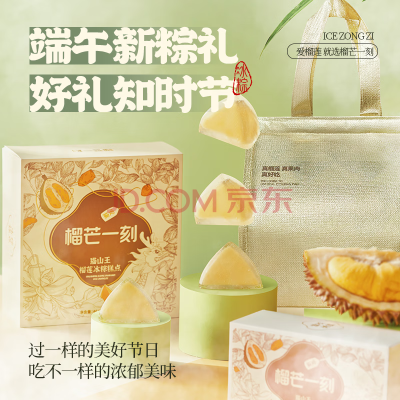 商品相册:榴芒一刻猫山王榴莲冰粽 冰皮粽子端午礼盒水晶粽 高档商务送礼54g*8枚第