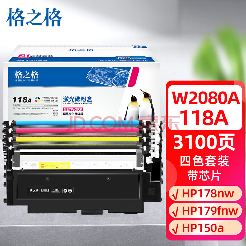 商品相册:格之格118a硒鼓适用惠普178nw硒鼓 179fnw 150nw 150a w2080a墨盒 hp178nw打印机粉盒四色套装 高清抗升级#第