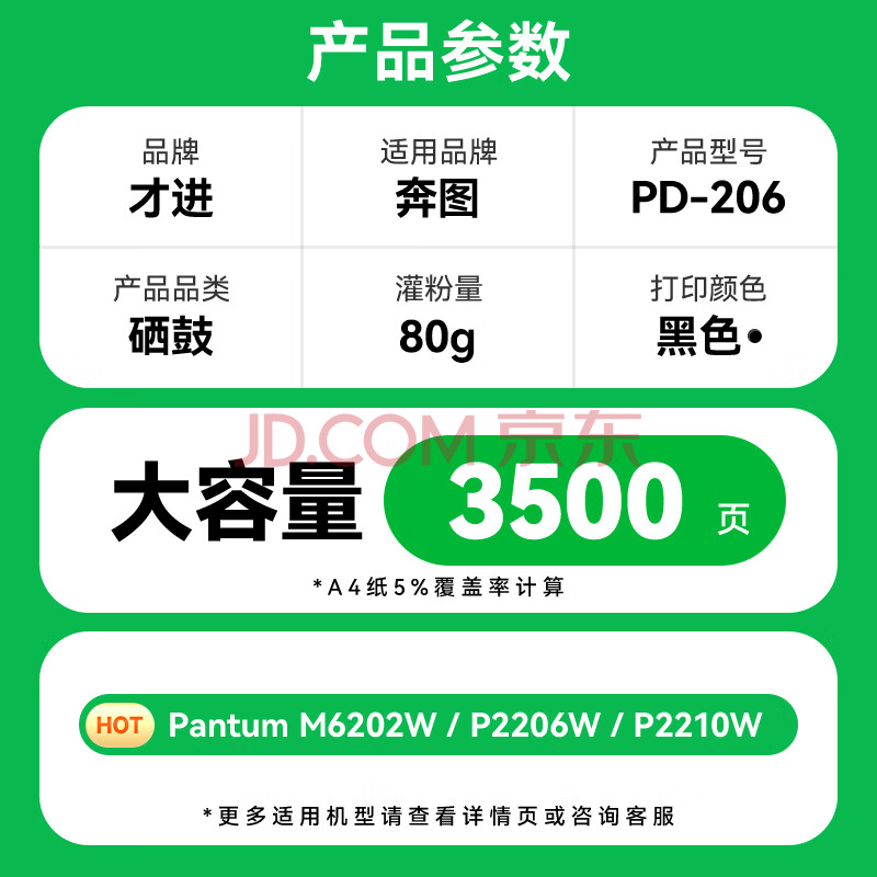 商品相册:才进适用奔图m6506硒鼓pantum P2506W/NW粉盒pd-206 m6506nw激光打印机易加粉墨盒M6556N/NW M6606N/NW碳粉盒第