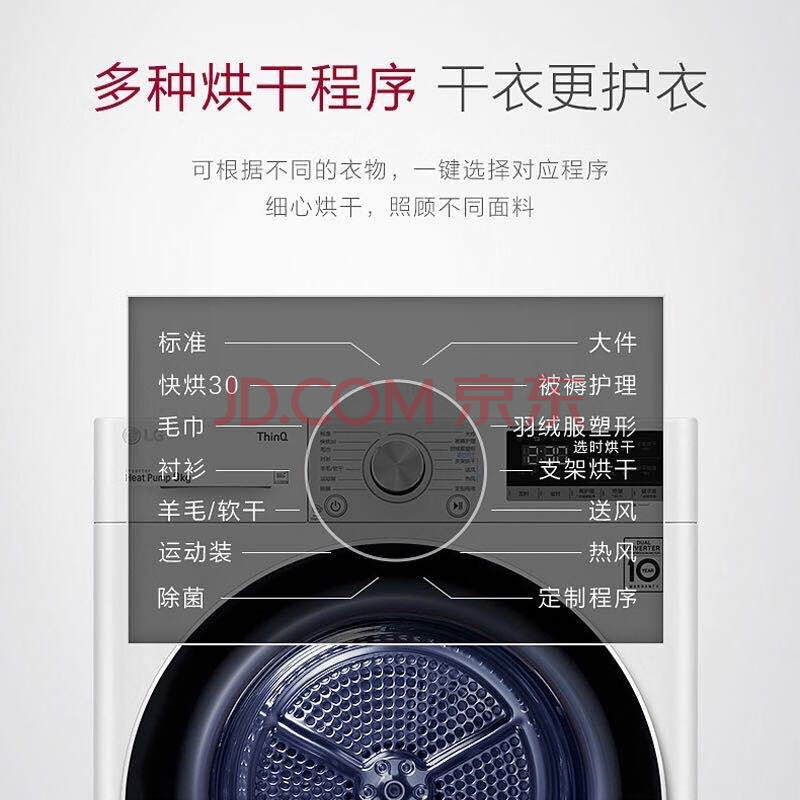 商品相册:LG奢华白 烘干机 10KG大容量 除菌除螨 双转子变频热泵 30min快烘 双重绒毛过滤 RH10V3AV6W第
