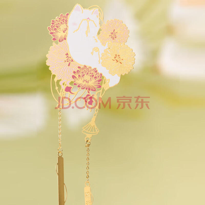 商品相册:奉旨故宫文创 宫猫花影-十二花神故宫猫书签 黄铜金属创意 学生毕业礼物 九月菊花单支装第
