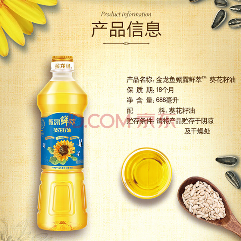 商品相册:金龙鱼 甄露鲜萃葵花籽油688ML第1张/共4