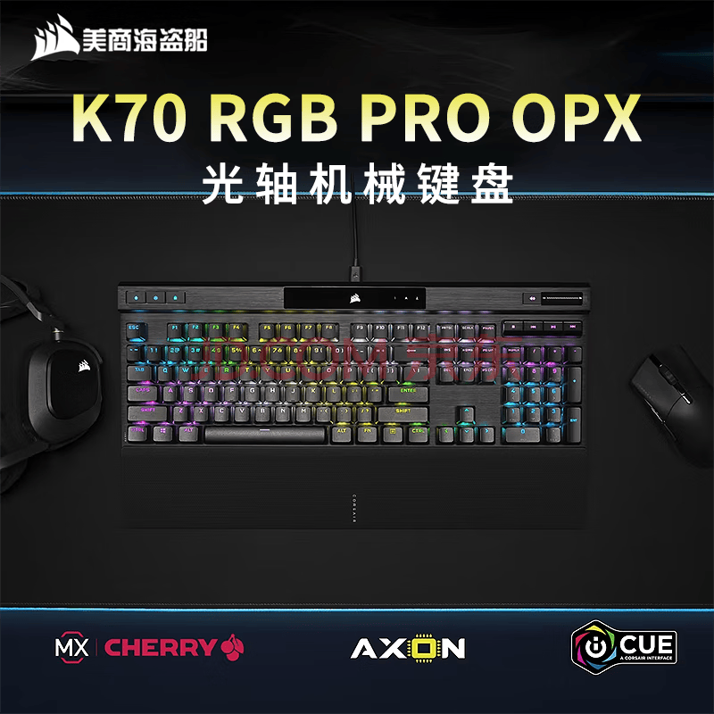 商品相册:美商海盗船 (USCORSAIR) K70 RGB PRO 机械键盘 游戏键盘 全尺寸 8000Hz 竞技模式 铝框体 黑色 OPX光轴第
