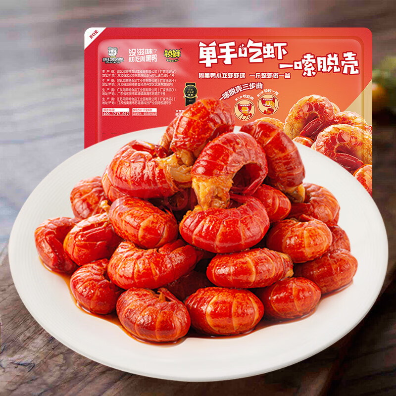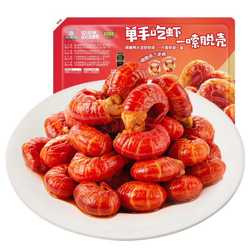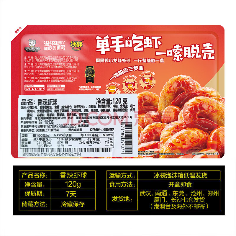 商品相册:周黑鸭 锁鲜虾球120g 即食香辣虾球虾尾 卤味熟食 武汉特产 气调盒装第