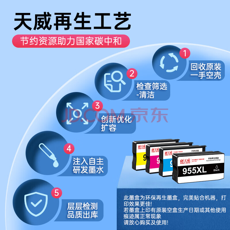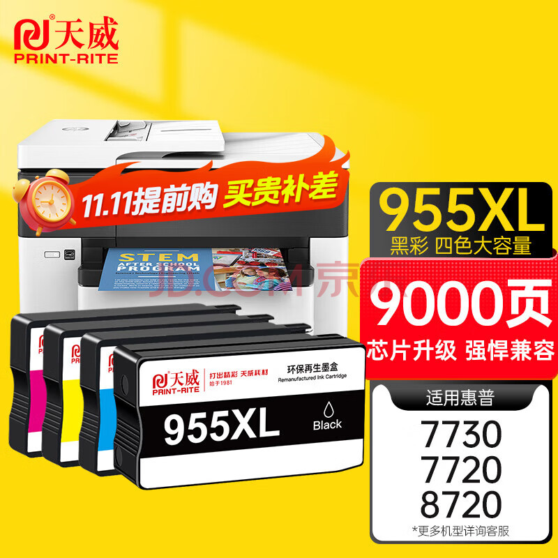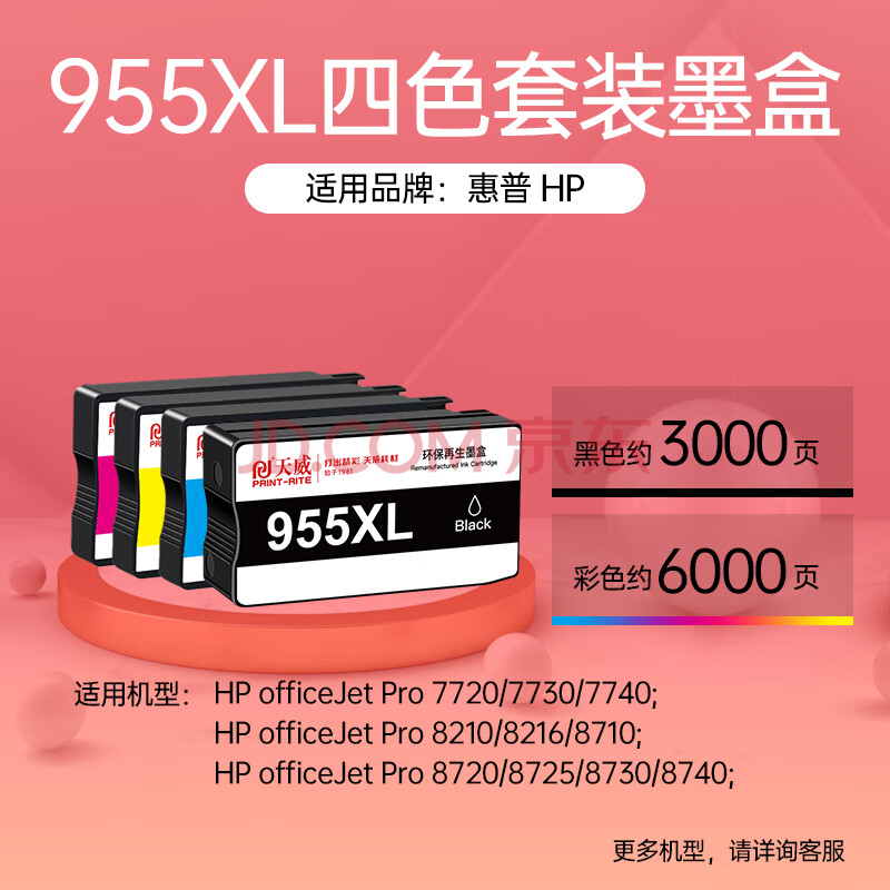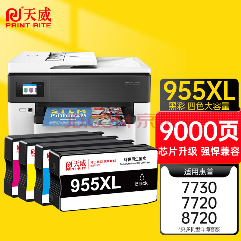 商品相册:天威955XL墨盒再生原装品质 适用惠普hp7720 7730 7740 8710 8720 8210打印机墨盒8216 8725 8730 8740四色套装第