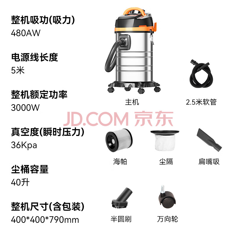 商品相册:荣事达(Royalstar)工业吸尘器3300W峰值大功率家用大吸力40L装修开荒酒店保洁商用洗车店RS-XT300B-1第