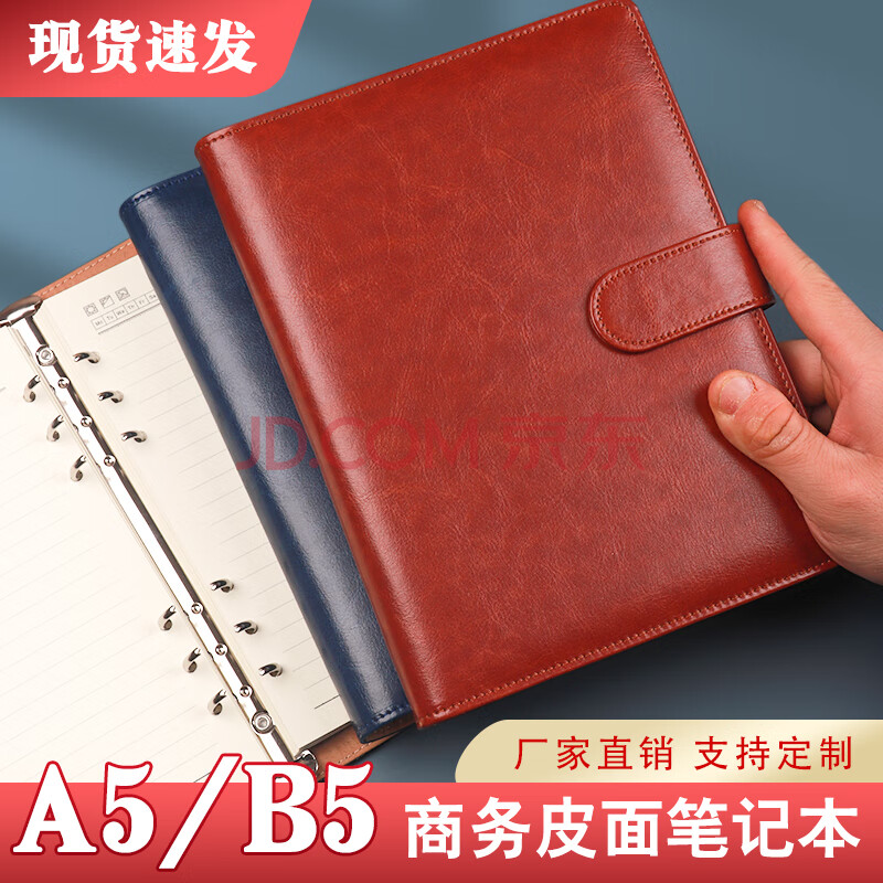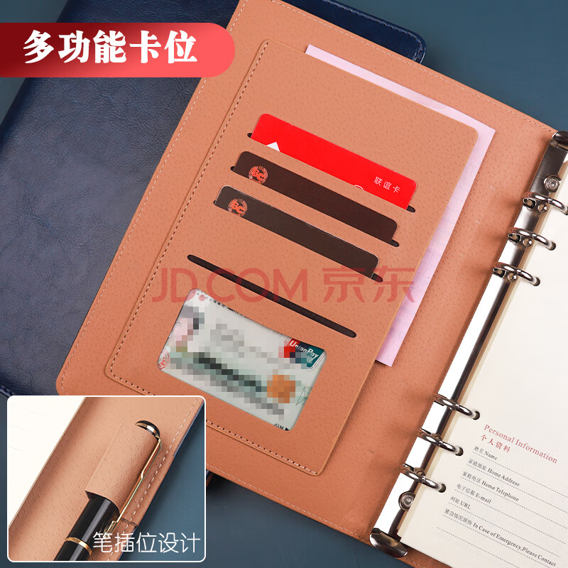 商品相册:旭彤 A5笔记本活页本商务简约皮面记事本 多功能记事本可拆卸带扣会议记录本工作日记本 可印LOGO第