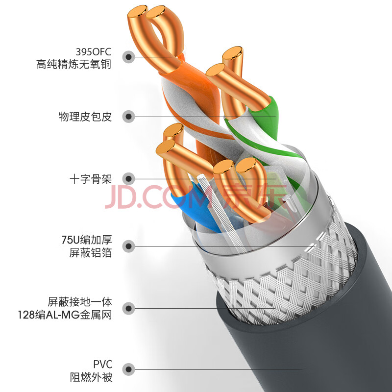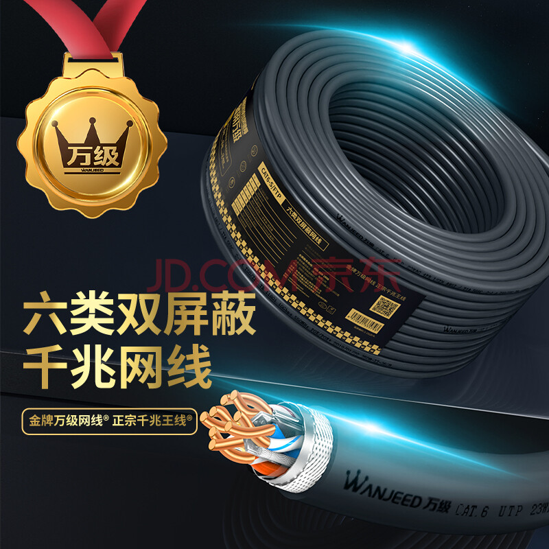 商品相册:万级六类双屏蔽网线【23AWG-0.57mm国标无氧铜纯铜芯】CAT6类千兆双绞线 家装工程网络监控POE箱线30米第