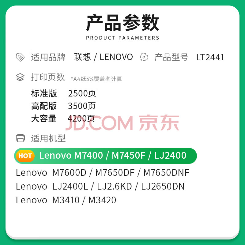 商品相册:才进适用联想m7400碳粉lt2441h墨粉m7450f m7650df m7650dnf lj2400l m7600d激光打印机复印一体机通用墨粉盒第