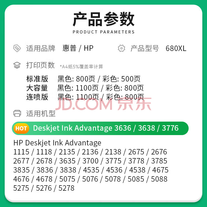 商品相册:才进适用HP惠普680墨盒3636 3638 3838打印机2138 2677 3776 3777 3778 4678 5078 5088黑彩色2678 2676 4538第