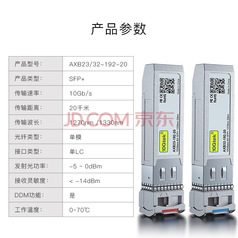 商品相册:万兆通光电万兆SFP+单模光模块 10G单模LC单纤双向光纤模块 20公里 SFP-10G-BIDI 兼容华为第