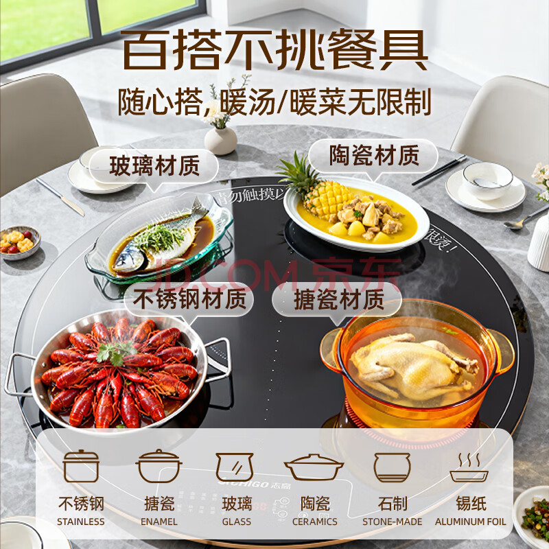 商品相册:志高(CHIGO)【分区控温】暖菜板 热菜板保温板 饭菜加热板2025新款家用多功能圆形转盘可旋转餐桌垫FQNCB80S第