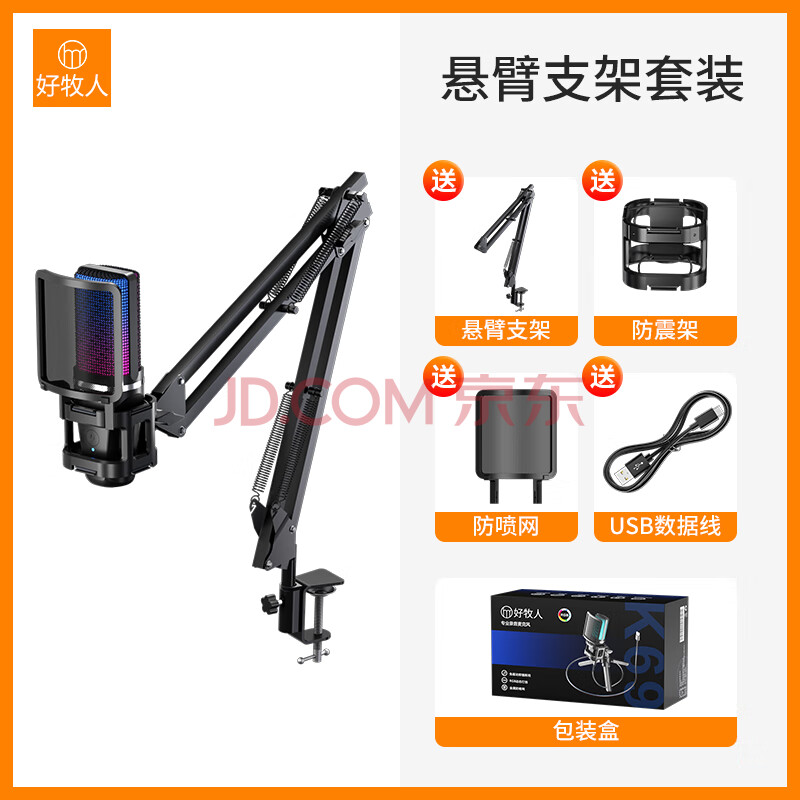 商品相册:好牧人USB电脑麦克风桌面电容麦专业配录音台式笔记本游戏语音视频会议话筒降噪电竞外设主播直播k歌设备第