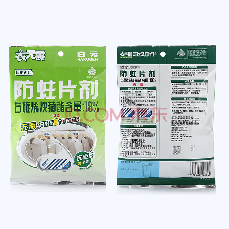 商品相册:白元防蛀片2片装衣柜用 室内宿舍衣物羊毛衫防蛀虫除湿神器第