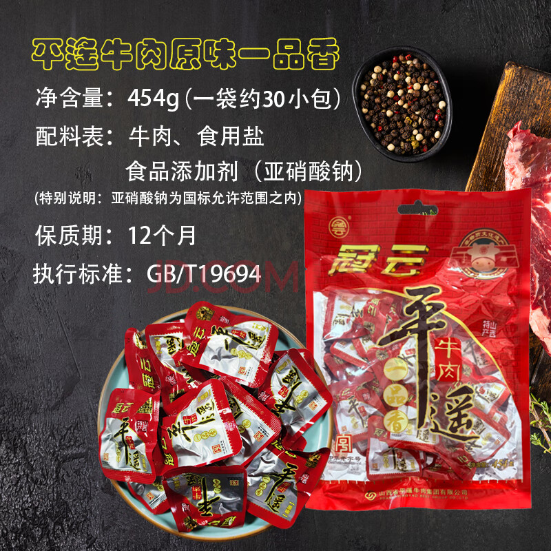 商品相册:冠云平遥牛肉一品香454g 酱卤牛肉粒熟食年货 山西特产 中华老字号第