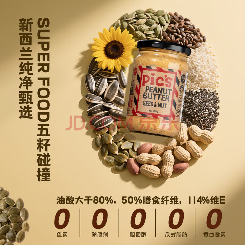 商品相册:皮卡思Pics花生酱 火麻仁葵花籽奇亚籽酱生酮健身五籽花生酱290g第