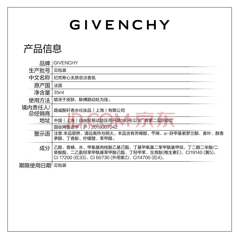 商品相册:纪梵希(Givenchy)心无禁忌淡香氛香水35ml柠檬柑橘花香调持久留香 生日礼物送女生第