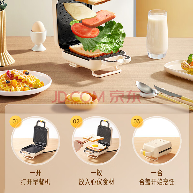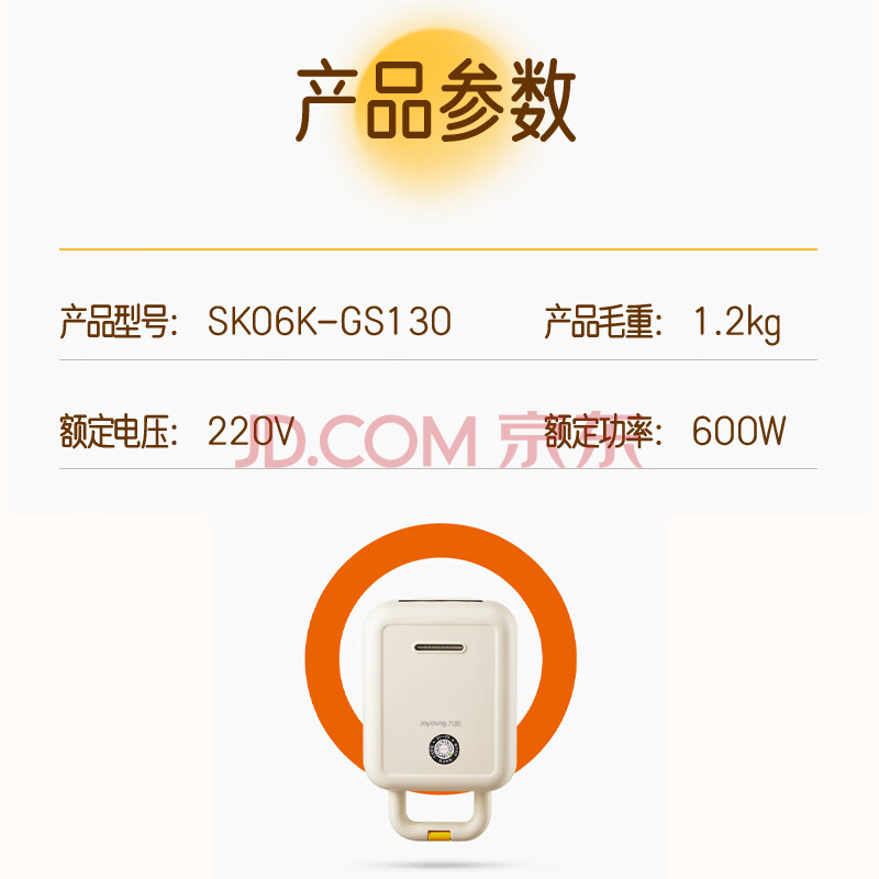 商品相册:九阳(Joyoung)早餐机 三明治机多功能家用小型华夫饼烤面包加热吐司神器 SK06K-GS130第