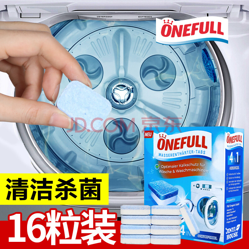 商品相册:ONEFULL洗衣机清洗剂16粒活氧除垢泡腾片家用滚筒洗衣机清洁剂杀菌除垢第